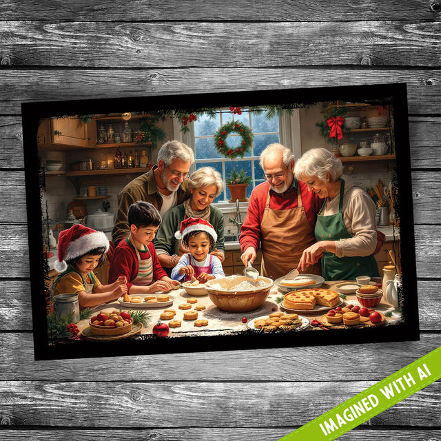 Celebrate the joy of the holiday season with this heartwarming postcard featuring a family gathered in the kitchen, joyfully making Christmas cookies and desserts. Laughter and love fill the air as they create delicious treats together, embodying the spirit of togetherness and festive cheer. This delightful scene captures the essence of family traditions during the holidays, making it a wonderful way to share your warmest wishes and spread joy to friends and family.