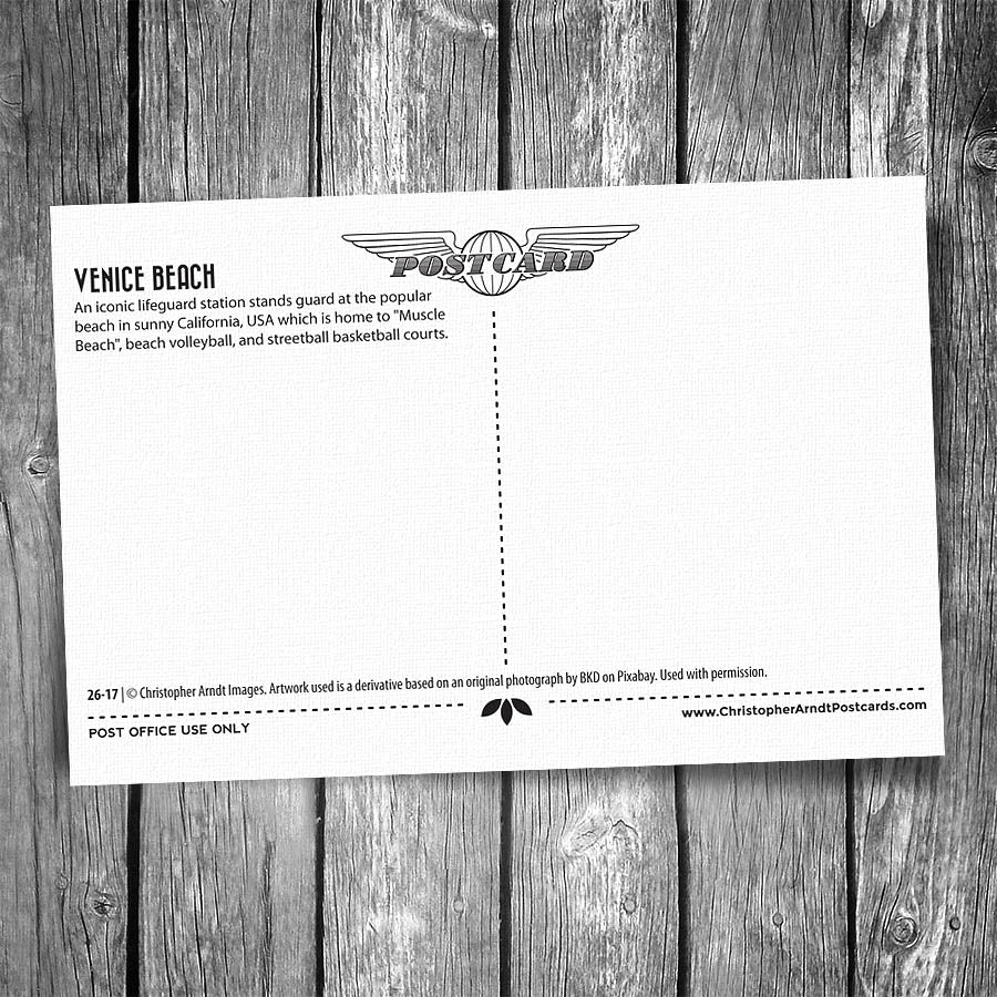 An iconic lifeguard station stands guard at the popular beach in sunny California, USA which is home to "Muscle Beach", beach volleyball, and streetball basketball courts.