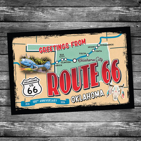 Greetings from Route 66 Oklahoma Map Postcard - 100th Anniversary