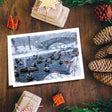 Located in New York City's beautiful Central Park, Gapstow Bridge crosses over the Pond, where ducks find shelter in the open water. This serene area, situated below street level, offers a peaceful escape from the city's hustle and bustle as visitors stroll along winding pathways. With its rustic charm and stunning views of the landscape and skyline, Gapstow Bridge is a perfect spot for enjoying nature and capturing memorable moments, especially in winter when the scene is dusted with snow.