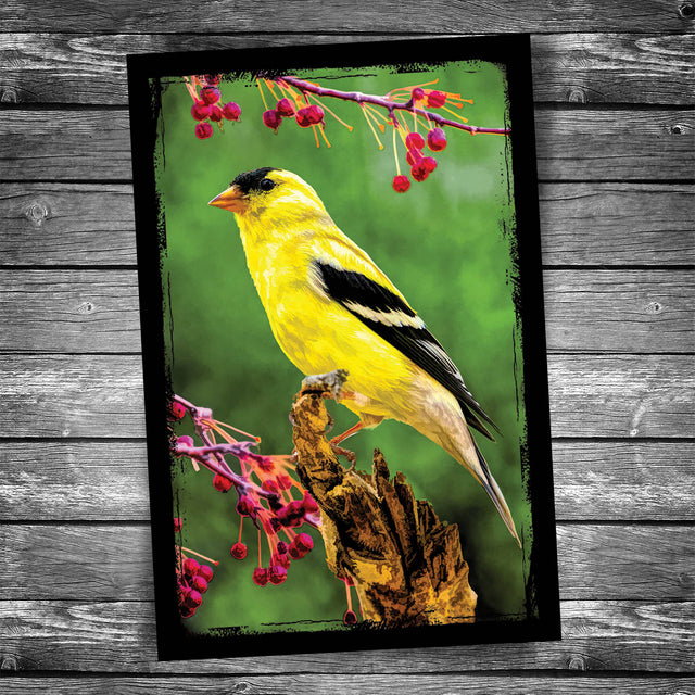 With its bright yellow plumage, the American Goldfinch is a vibrant sight in open fields, meadows, and backyards, where it feeds almost exclusively on seeds.