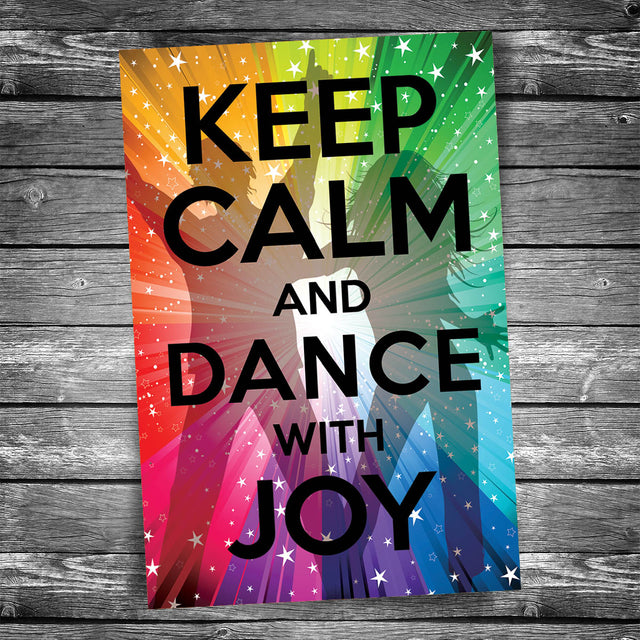 Words read "Keep calm and dance with joy"
