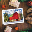 Embrace the beauty of winter with this serene card featuring a picturesque farm scene. A vibrant red barn stands proudly against a backdrop of glistening snow, creating a charming contrast that captures the essence of the season. This tranquil winter setting evokes feelings of peace and nostalgia, making it a wonderful way to share your holiday greetings and spread warmth to friends and family.